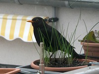 Im Jahr 2017 hatte ich eine Amsel als Dauergast auf meinem Balkon. Über Wochen hat sie es sich in einem der Kästen gemütlich gemacht und laut drauflosgeträllert. Richtig laut, mehrmals am Tag über zehn Minuten und länger. Dann flog sie auf ein anderes Hausdach, machte da weiter und kam irgendwann wieder zurück.