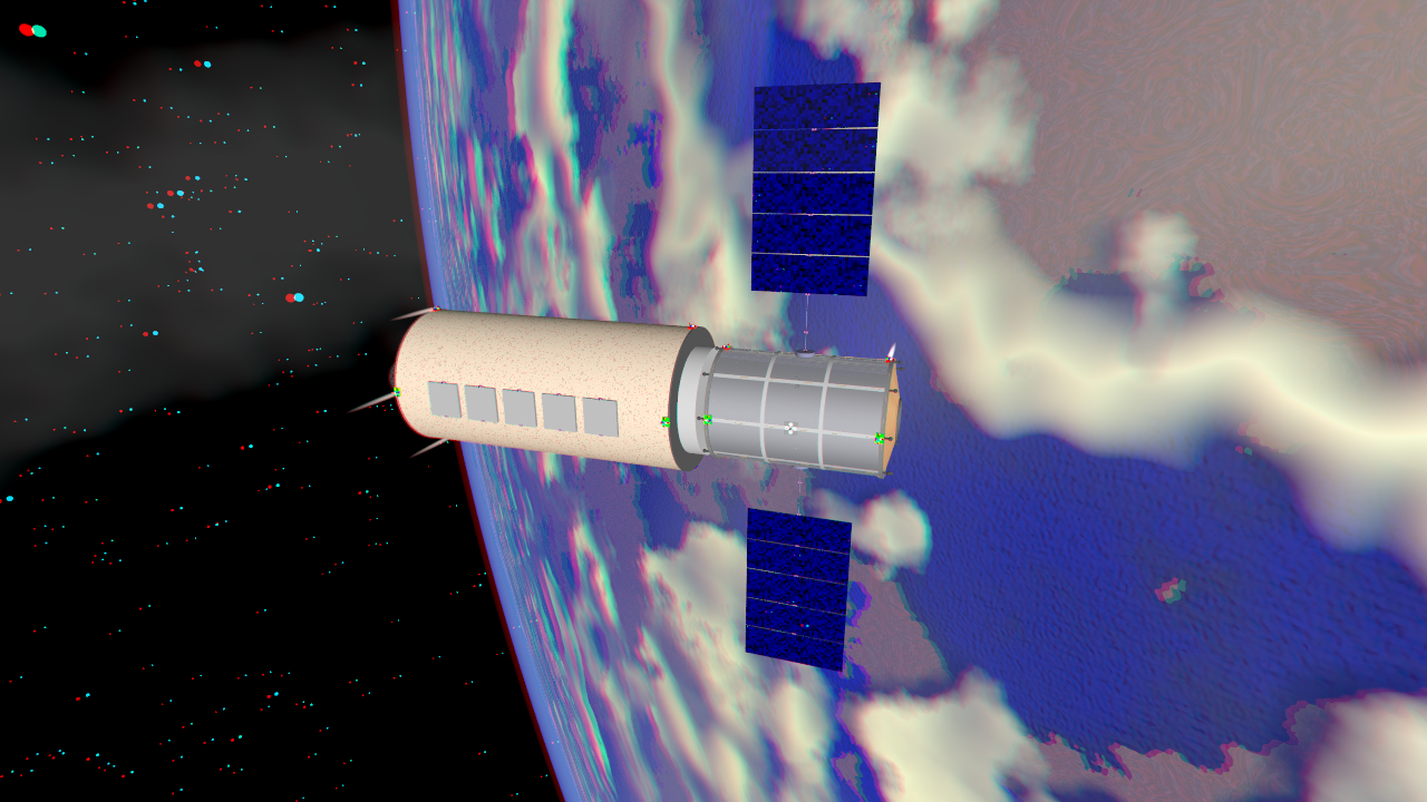 Das Video wurde im April 2018 erstellt, seitdem habe ich mehrere Elemente verbessert. Der Sternenhimmel zeigt echte Sterne und Sternbilder, der Erd-Horizont sieht ein wenig realistischer aus und an ein paar Details des Raumschiffes wurde ebenfalls gebastet. Ganz nebenbei könnte ich den ganzen Spaß nun auch in Anaglyph-Stereo veröffentlichen, wobei ich an deren Umsetzung noch ein wenig feilen muss.