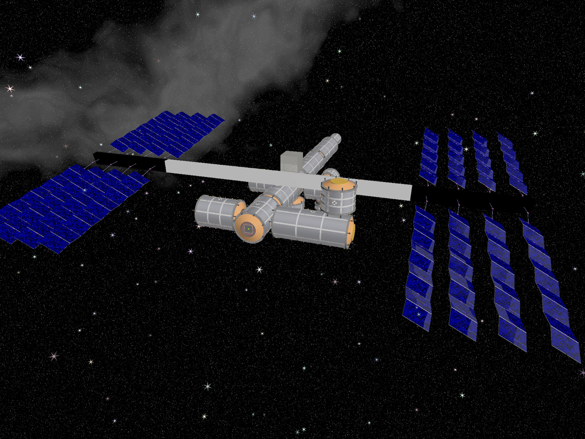 Wahnsinnig viel echter ist das Ding selbst zwei Jahre später nicht geworden, denn in mir arbeitet nunmal ein Programmierer. Der hat sich als nächstes damit beschäftigt, aus dem einen Modul die Internationalen Raumstation nachzubauen. Nicht schön aber ich habs gemacht. Ausbaufähig nennt man sowas glaub ich. Die wird noch besser, auf jedenfall, vielleicht sogar besser als ich es je hinbekommen könnte.