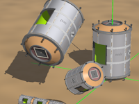 Aus Kugeln wurden unverzüglich Zylinder, da ich mit dem Zeitvertreib vorrangig angefangen hatte, um ein paar weltraum-bezogenen Ideen aus meinem Kopf in den Computer zu bekommen. Fiktive und nicht-fiktive Raumstation, Sonden und allesmögliche wollten umgesetzt werden, womit ich auch gleich begann.